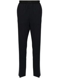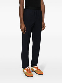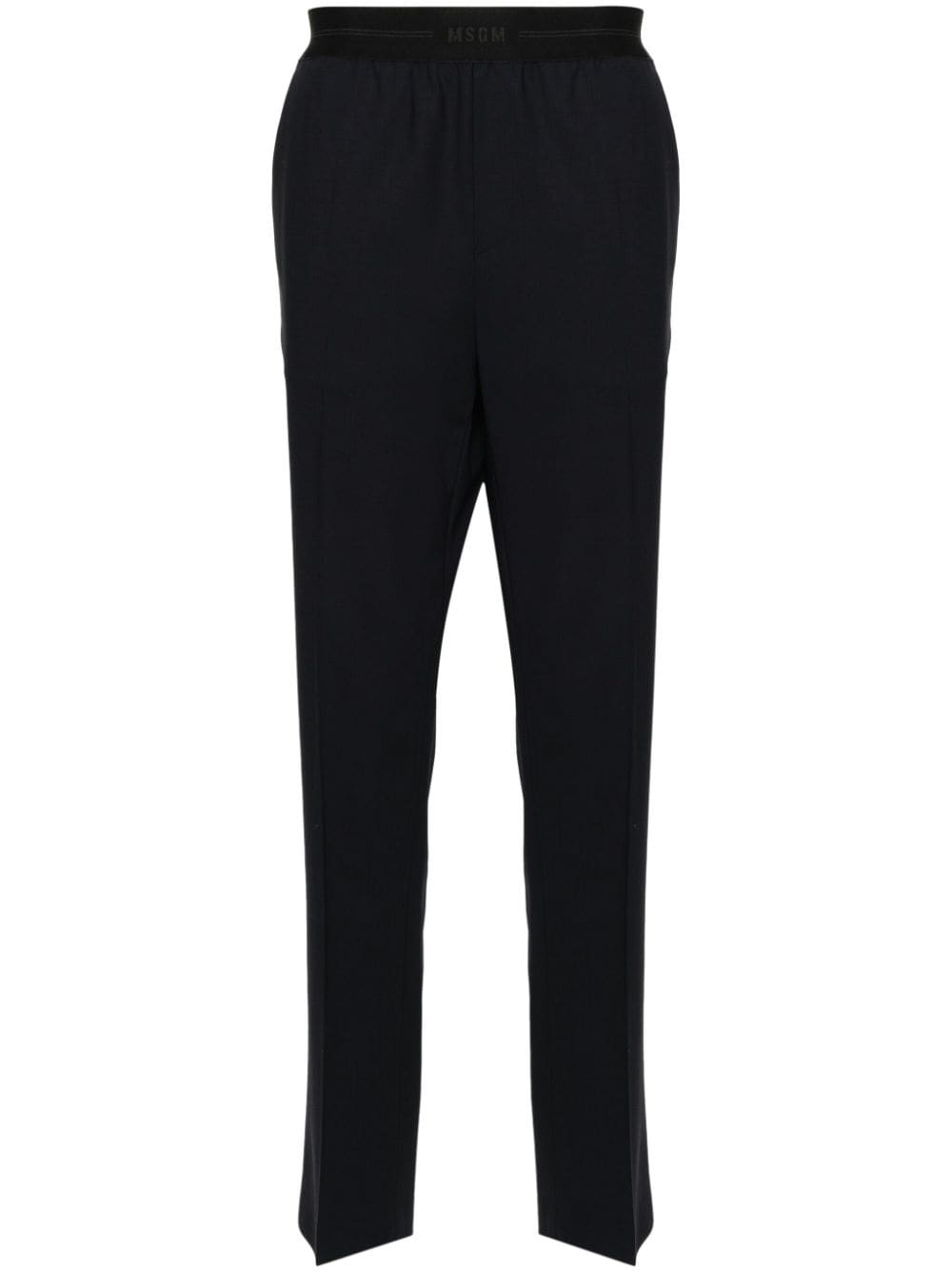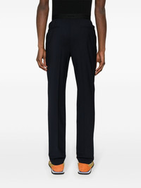 logo-waistband tailored trousers Highlights - Navy blue - Virgin wool blend - Tailored design - Elasticated logo waistband - Pressed crease - Slim cut - Two side slit pockets - Two rear welt pockets Made in Italy Composition Outer: Virgin Wool 96%, Elastane 4% Lining: Cotton 100% SIZE & FIT Model measurements Height 6 ft 2 in(1.88 m) Bust/Chest 36.61 in(93 cm) Hips 35.82 in(91 cm) Waist 27.95 in(71 cm) FittingInformation Designed for a slim tapered leg, offering a close fit that sits just away from the leg with a closer fit towards the ankle The elasticated waist allows for a comfortable fit Made from a midweight stretch fabric, this piece offers elasticity and flexibility when worn This piece fits true to size – take your usual size Washing instructions Dry Clean Only