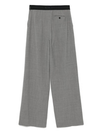 logo-waistband tailored trousers Highlights - Heather grey - Wool blend - Melange effect - Elasticated logo waistband - Two side slash pockets - Front pleat detailing - Rear button-fastening jetted pocket - Full-length - Wide leg Made in Italy Composition Outer: Wool 96%, Elastane 4% Lining: Polyester 100%