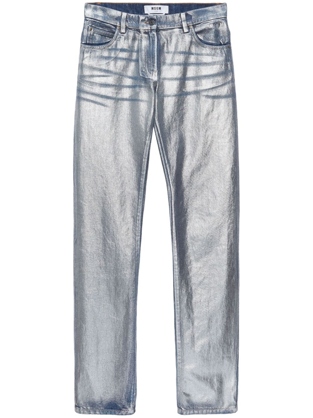 metallic-finish straight jeans