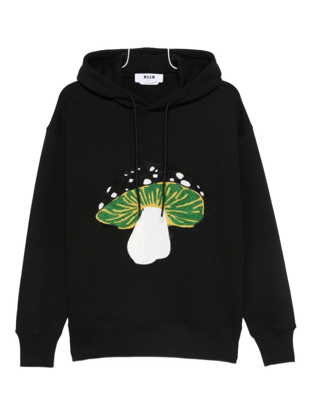 mushroom-embroidered hoodie Highlights - Black - Mushroom embroidery - Drawstring hood - Long sleeves - Ribbed cuffs - Ribbed hem Imported Composition Cotton 100% Washing instructions Read Manufacturer Guidelines