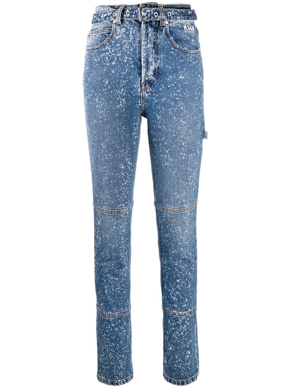 paint-splattered slim-fit jeans Keep it casual but never boring. Decorated with a paint splatter effect, these slim-fit jeans from MSGM are the perfect go-to for an unapologetically cool relaxed looks. Counting down the days for the weekend in 3, 2, 1... Highlights - Blue - Cotton denim - Paint splatter effect - High waist - Belted waist - Button fly fastening - Classic five pockets - Logo patch to the rear - Slim fit Made in Italy Composition Outer: Cotton 100% Lining: Polyester 65%, Cotton 35% SIZE & FIT Model measurements Height 5 ft 10 in(1.77 m) Bust/Chest 32.28 in(82 cm) Hips 35.03 in(89 cm) Waist 25.19 in(64 cm) FittingInformation This piece fits true to size. We recommend you get your regular size Cut for a slim fit Made with a mid-weight non-stretch fabric Washing instructions Machine Wash