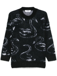 patterned-jacquard sweater Highlights - Black/white - Patterned jacquard - Brushed effect - Crew neck - Drop shoulder - Long sleeves - Ribbed cuffs and hem - Straight hem Made in Italy Composition Acrylic (Fiber) 38%, Polyamide 32%, Kid Mohair 30% SIZE & FIT Model measurements Height 5 ft 9 in(1.75 m) Bust/Chest 34.64 in(88 cm) Hips 36.61 in(93 cm) Waist 26.37 in(67 cm) FittingInformation Designed for a relaxed fit, this piece allows for comfort and movement when worn Made with a midweight knit, this piece offers some stretch