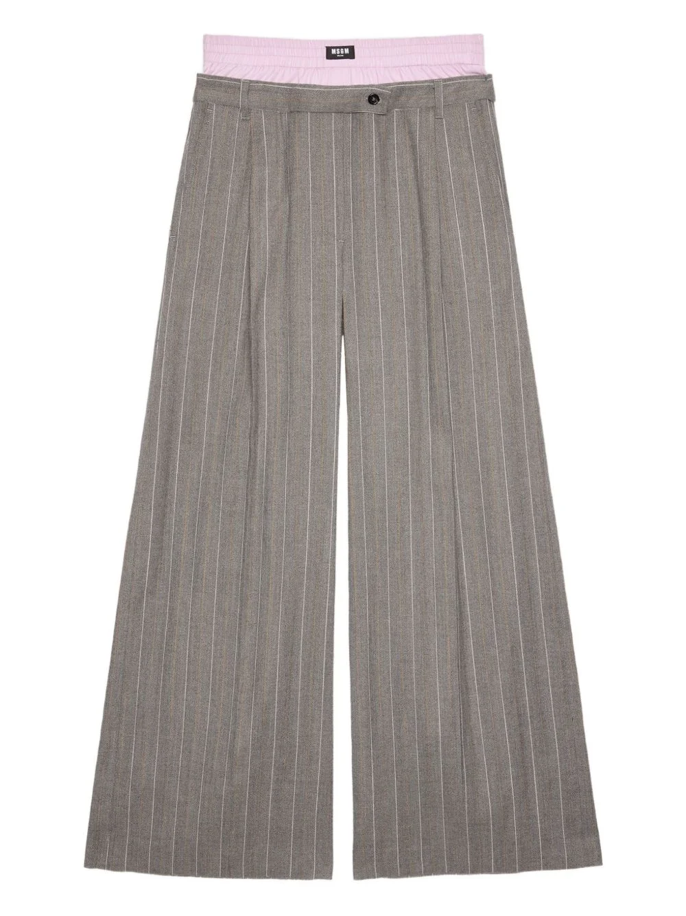 pinstripe-pattern layered trousers Highlights - Grey - Pinstripe pattern - Button fastening - Belt loops - Rear welt pockets Made in Italy Composition Fabric 100% Washing instructions Read Manufacturer Guidelines