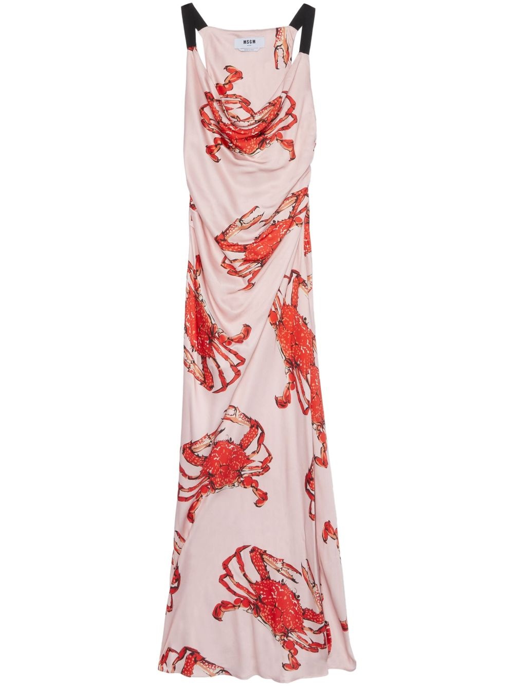 Long pink satin dress with "King crab" print