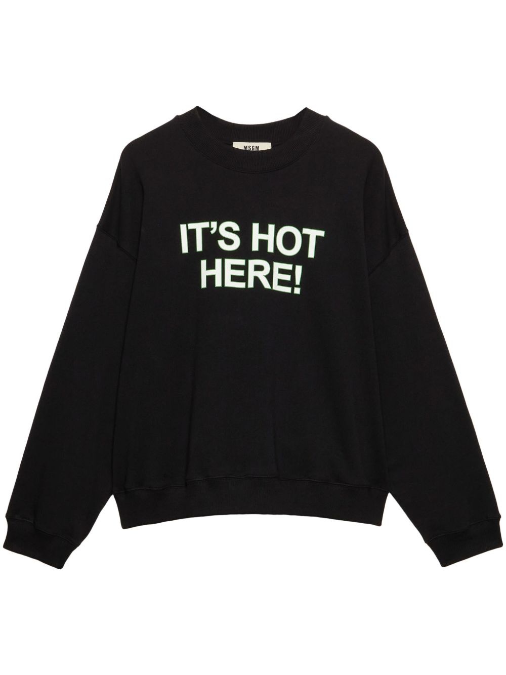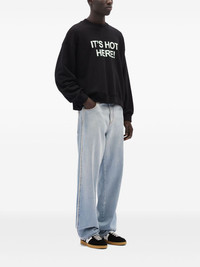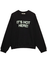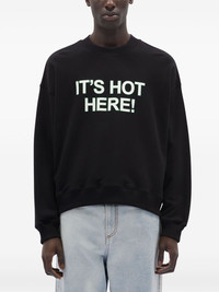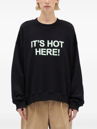 Black organic cotton sweatshirt with quotes "IT'S HOT HERE!"