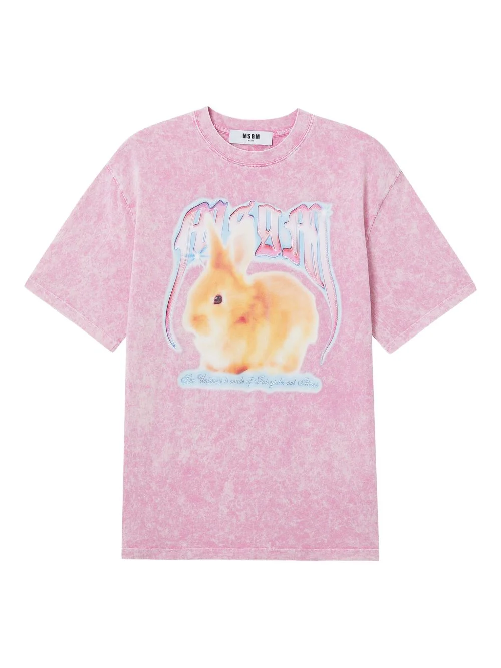 Pink faded cotton T-shirt with "MSGM Concert Bunny" print