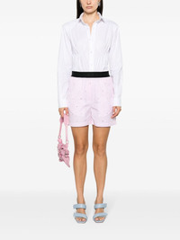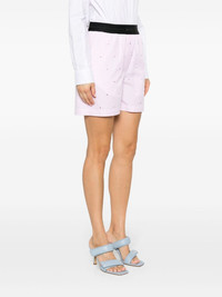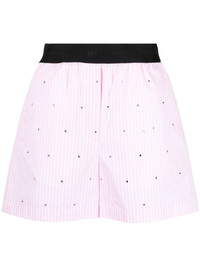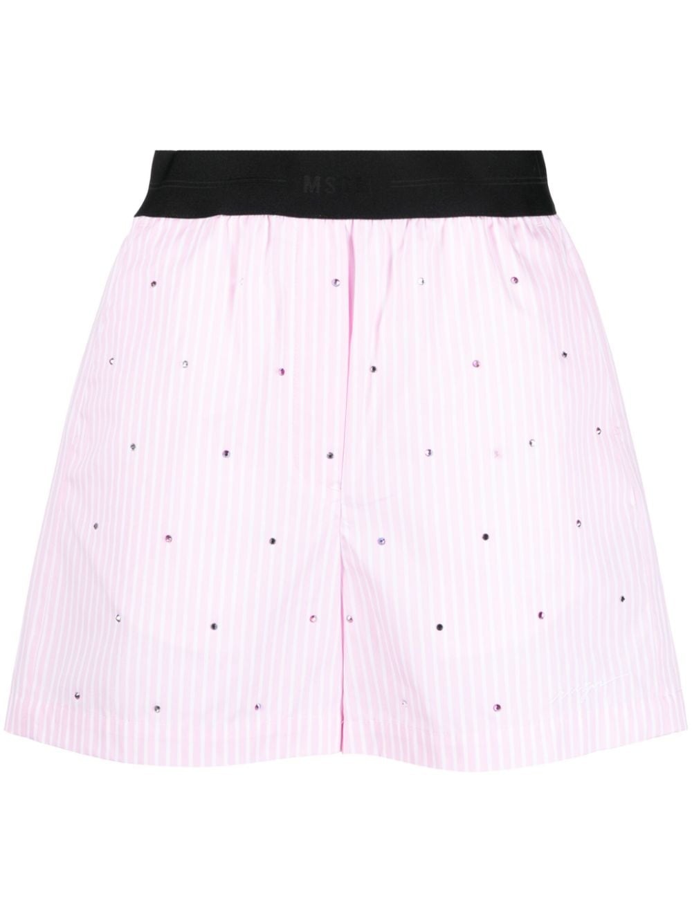 rhinestone-embellished striped shorts Highlights - Light pink/optical white/jet black - Cotton - Poplin texture - Vertical stripe pattern - Rhinestone embellishment - Elasticated logo waistband - Two diagonal pockets to the sides - Wide leg - Knee-length Made In Italy Composition Outer: Cotton 100% Lining: Cotton 100% SIZE & FIT Model measurements Height 5 ft 11 in(1.8 m) Bust/Chest 33.07 in(84 cm) Hips 37.4 in(95 cm) Waist 25.19 in(64 cm) FittingInformation Designed for a relaxed, roomy fit The elasticated waist allows for a comfortable fit Made from a lightweight non-stretch fabric This piece fits true to size – take your usual size Washing instructions Hand Wash