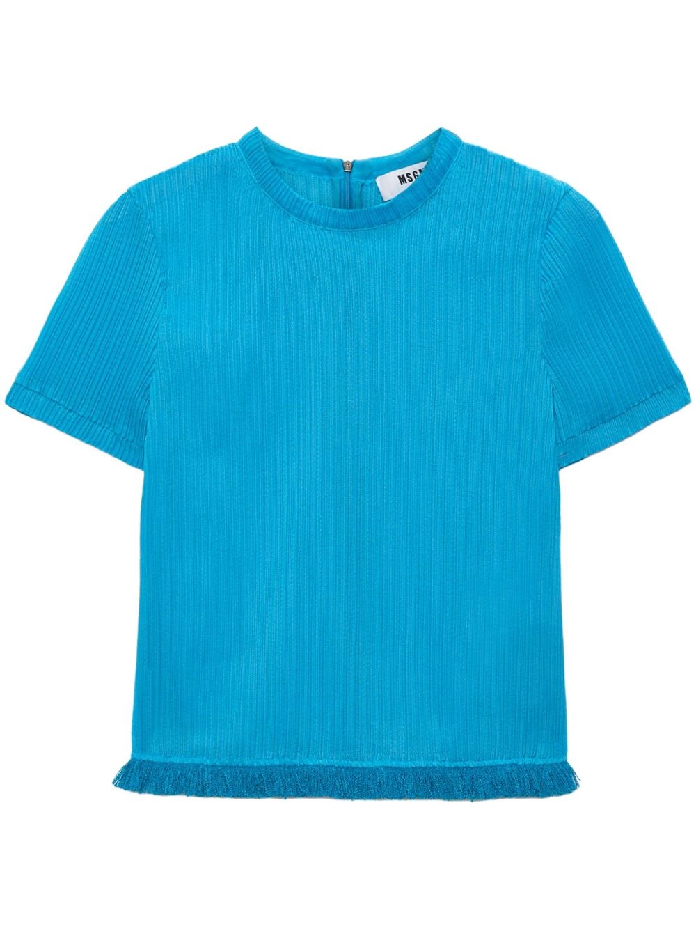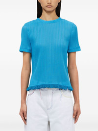 ribbed T-shirt Highlights - Aqua blue - Crew neck - Short sleeves - Fringed edge Imported Composition Fabric 100%