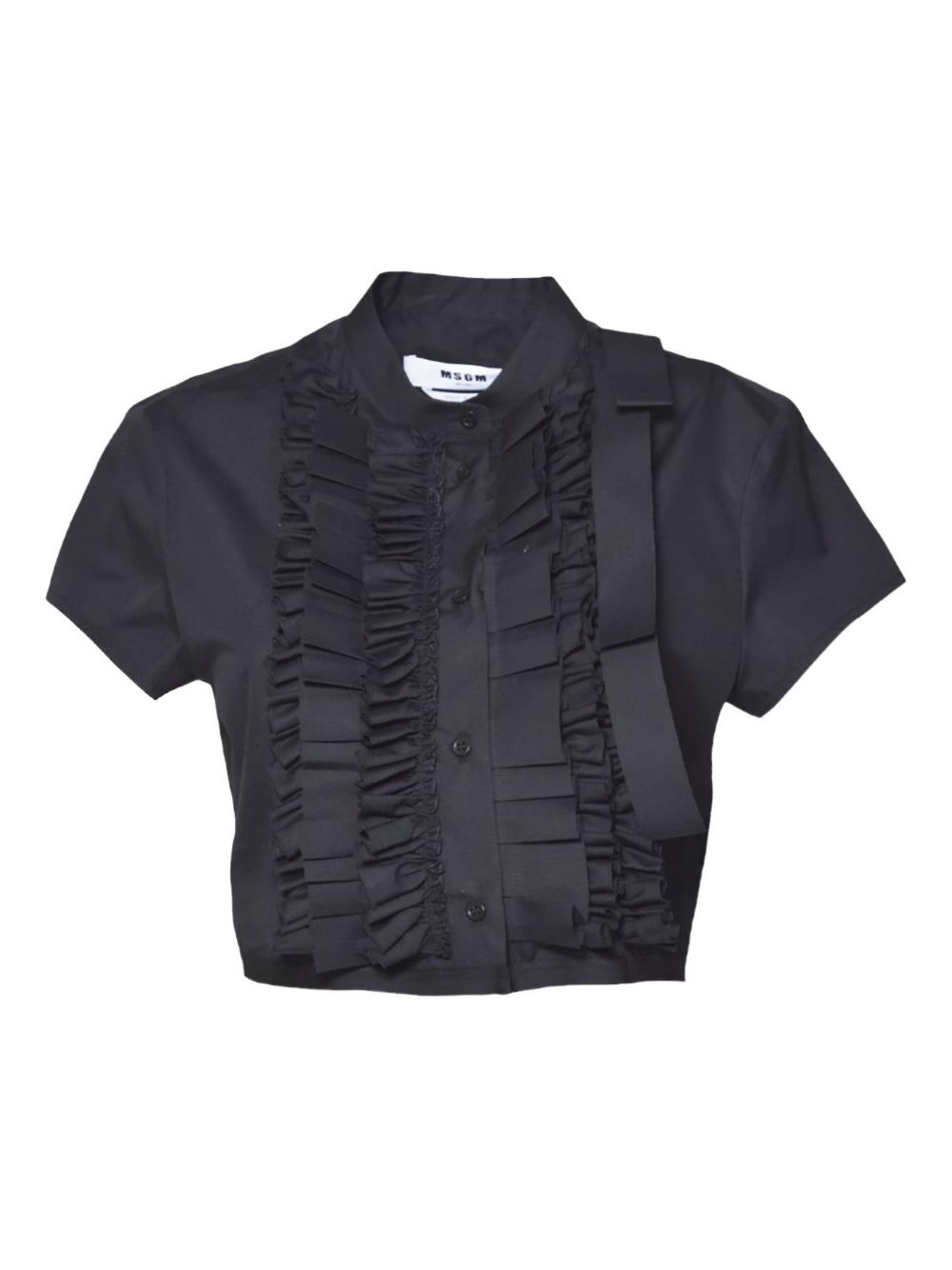 ruffled shirt Highlights - Black - Ruffled detail - Button fastening - Short sleeves - Ribbon detail Made in Italy Composition Cotton 100% Washing instructions Read Manufacturer Guidelines