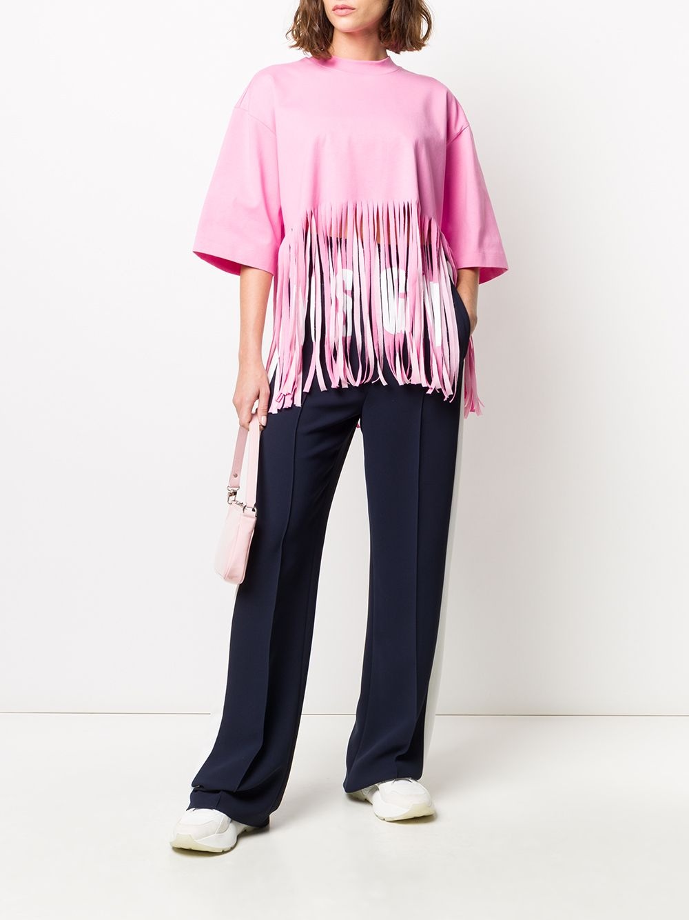 side stripe track pants Proving that MSGM isn't all smoke and mirrors sartorialism, these side stripe track pants bring things back to street level - offering athleisure styling and just a hint of Italian tailoring. Bellisima.Featuring an elasticated waistband, a front inverted pleat and applique stripes at the sides. Made in Italy Composition Polyester 100% SIZE & FIT Model measurements Height 5 ft 9 in(1.74 m) Bust/Chest 32.28 in(82 cm) Hips 35.82 in(91 cm) Waist 24.01 in(61 cm) FittingInformation This piece fits true to size. We recommend you get your regular size Designed to be fitted at the waist, loose over the leg Made with a mid-weight non-stretch fabric Washing instructions Dry Clean Only