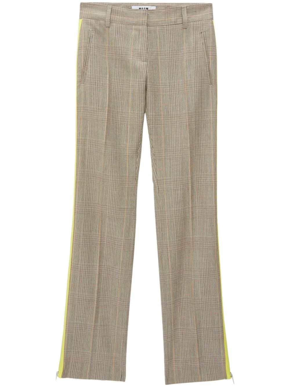 side-zip straight trousers Highlights - Brown/yellow - Check print - Mid-rise - Straight leg - Concealed front fastening - Belt loops - Slip pockets to the sides - Two rear button-fastening jetted pockets - Side zip fastening Imported Composition Virgin Wool 100% Washing instructions Read Manufacturer Guidelines