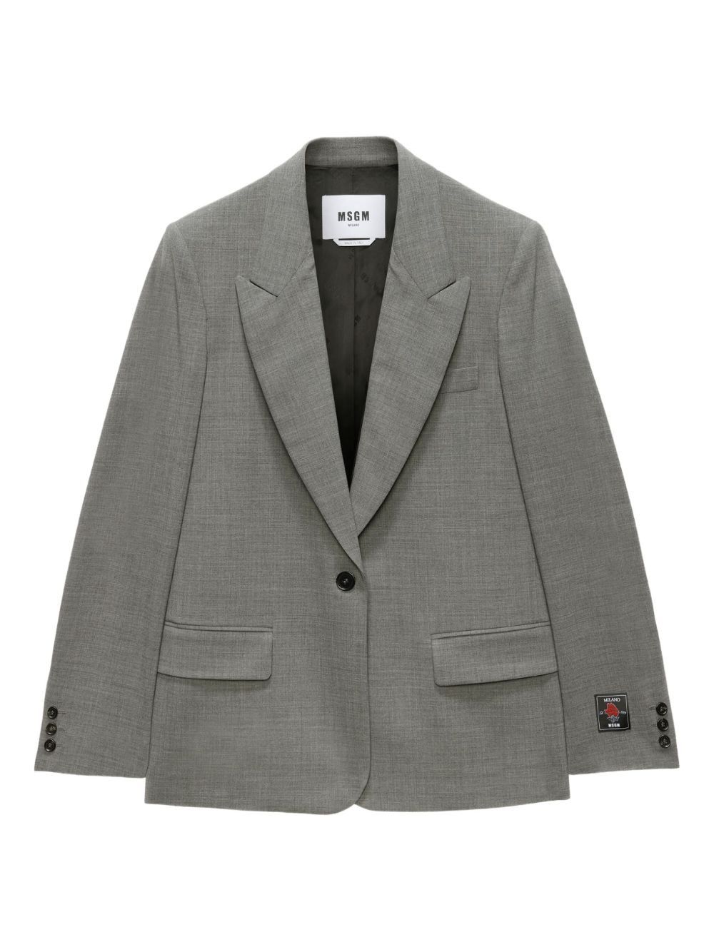 single-breasted blazer Highlights - Grey - Front button fastening - Side patch pockets - Long sleeves - Buttoned cuffs Imported Composition Lining: Polyester 100% Outer: Virgin Wool 96%, Elastane 4% Washing instructions Dry Clean Only