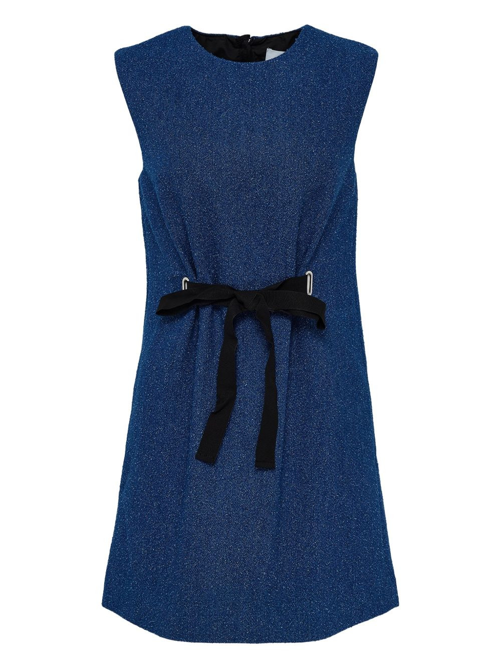 sleeveless belted dress Highlights - Blue - Metallic flecks - Sleeveless - Crew neck - Self-tie belt - Back zip fastening Imported Composition Fabric 100% Washing instructions Read Manufacturer Guidelines