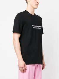 slogan-print cotton T-shirt Highlights - Black - Cotton - Jersey knit - Slogan print - Crew neck - Short sleeves - Straight hem - When buying this unisex item, keep in mind that it is graded in standard men's sizing Made in Italy Composition Cotton 100% SIZE & FIT Model measurements Height 5 ft 11 in(1.8 m) Bust/Chest 33.07 in(84 cm) Hips 37.4 in(95 cm) Waist 25.19 in(64 cm) FittingInformation This piece is unisex. Please take care when selecting your size Designed for a loose fit for men and an oversized fit for women Made with a mid-weight fabric Washing instructions Hand Wash