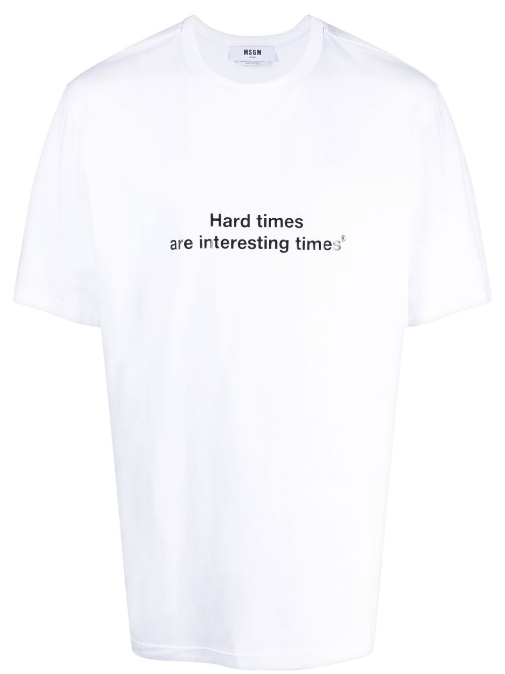 T-shirt quote "Hard times are interesting times"