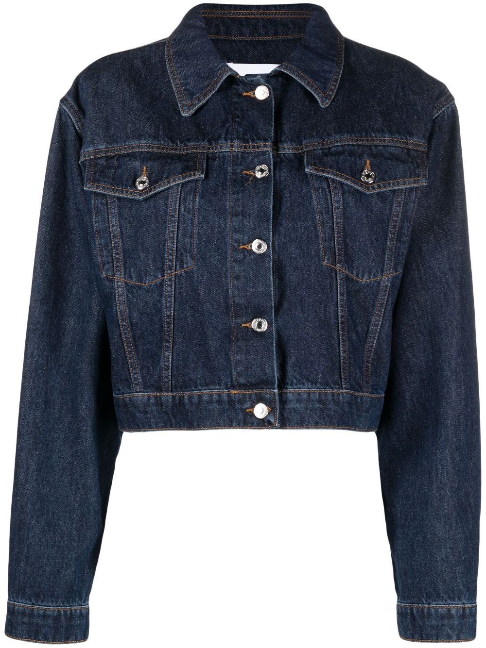 spread-collar denim jacket Highlights - Indigo blue - Cotton - Denim - Spread collar - Front button fastening - Two chest flap pockets - Long sleeves - Straight hem Made in Italy Composition Cotton 100% SIZE & FIT Model measurements Height 5 ft 10 in(1.78 m) Bust/Chest 29.92 in(76 cm) Hips 34.64 in(88 cm) Waist 23.62 in(60 cm) FittingInformation Designed for a relaxed fit, this piece allows for comfort and movement when worn Cropped in length Sturdy and hard-wearing, this denim piece offers no stretch This piece fits true to size – take your usual size Washing instructions Machine Wash