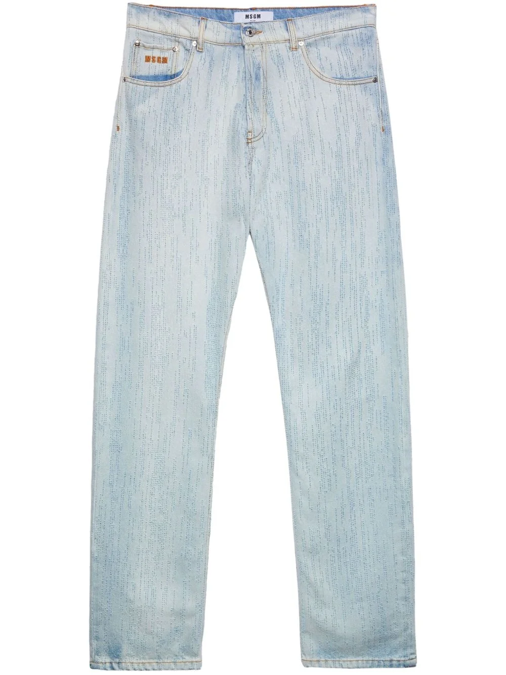 stitch-detail jeans Highlights - Light blue - Concealed fly and button fastening - Belt loops - Classic five pockets - Logo patch to the rear Imported Composition Fabric 100%