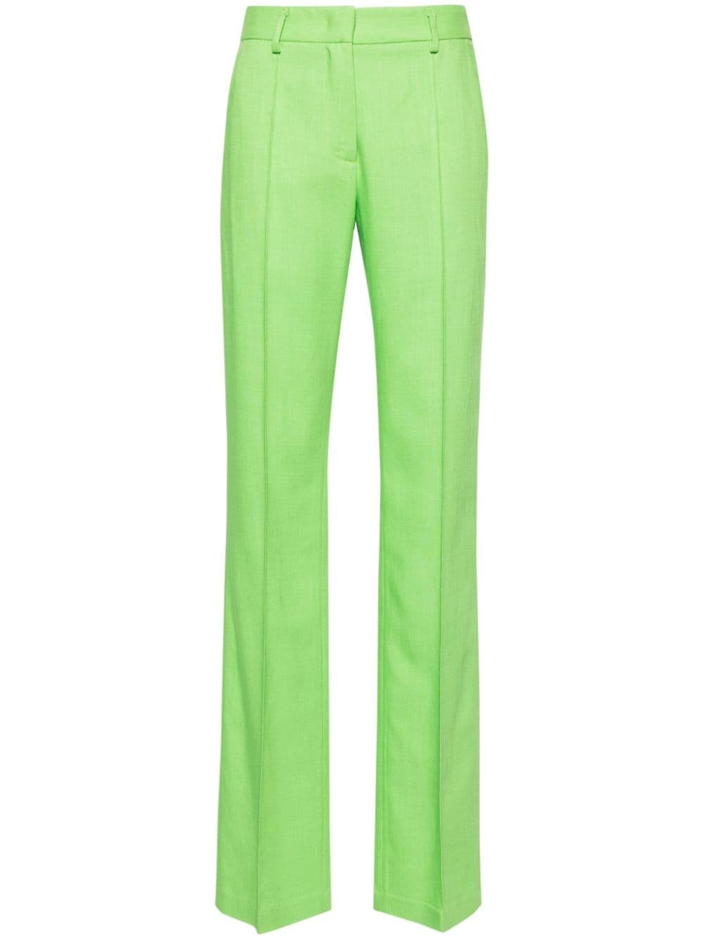 straight-leg tailored trousers Highlights - Lime green - Gabardine weave - Tailored design - Pleat detailing - Belt loops - Concealed front fastening - Straight leg - Two side slit pockets - Two rear welt pockets - Straight hem - Long length Made in Italy Composition Outer: Viscose 91%, Polyester 8%, Elastane 1% Lining: Polyester 100% SIZE & FIT Model measurements Height 5 ft 11 in(1.8 m) Bust/Chest 34.25 in(87 cm) Hips 35.82 in(91 cm) Waist 24.8 in(63 cm) FittingInformation Designed for a straight-leg fit, these trousers allow for a close fit at the waist and an unrestricted, comfortable fit over the leg Made from a midweight non-stretch fabric, this piece offers minimal elasticity when worn This piece fits true to size – take your usual size Washing instructions Dry Clean Only