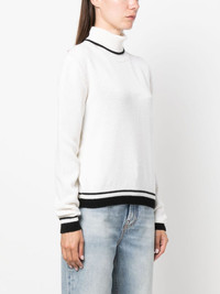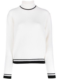 stripe-edge wool-blend jumper Highlights - White/black - Wool-cashmere blend - Knitted construction - Striped edge - Ribbed trim - Embroidered logo to the front - Roll neck - Long sleeves - Straight hem Made in Italy Composition Wool 70%, Cashmere 30% SIZE & FIT Model measurements Height 5 ft 10 in(1.78 m) Bust/Chest 33.46 in(85 cm) Hips 36.22 in(92 cm) Waist 23.22 in(59 cm) FittingInformation Designed for a relaxed fit, this piece allows for comfort and movement when worn The ribbed hem offers a close, comfortable fit Made with a midweight knit, this piece offers some stretch This piece fits true to size – take your usual size Washing instructions Hand Wash