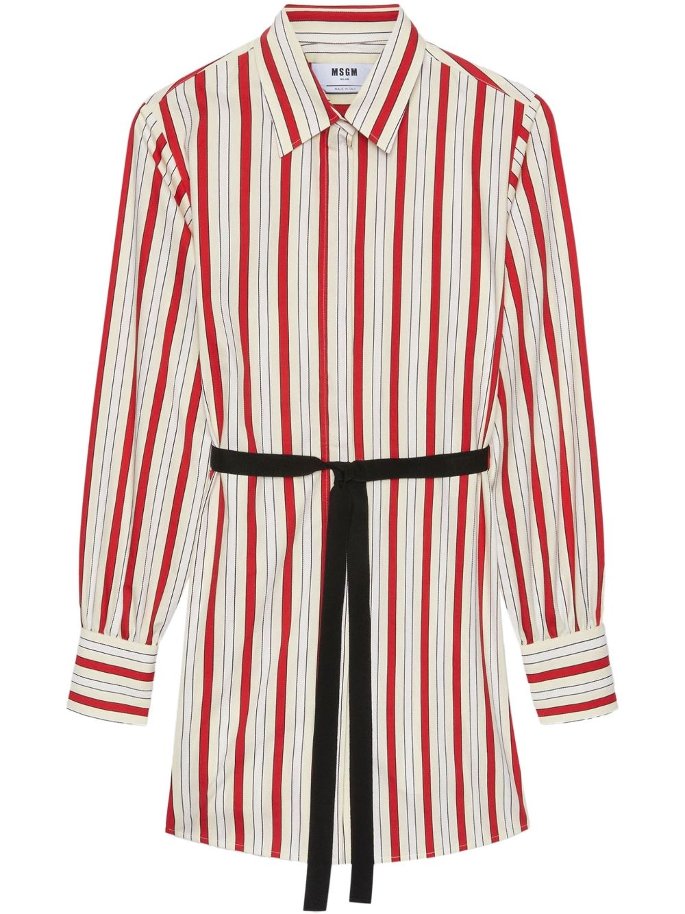 striped mini dress Highlights - White - Front button fastening - Buttoned-cuff sleeves - Belted waist - Flared design Imported Composition Fabric 100%