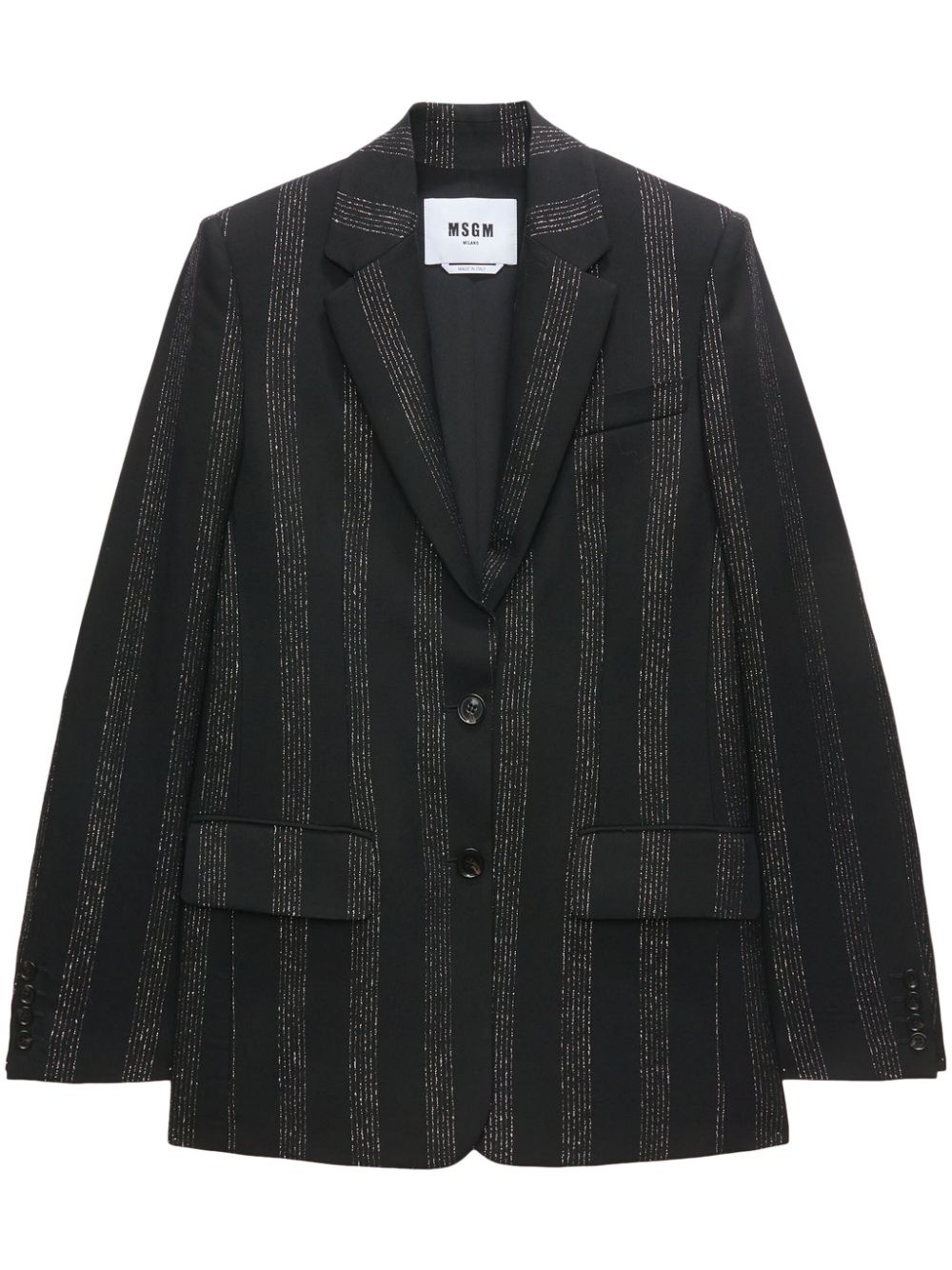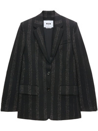 striped single-breasted blazer Highlights - Black/silver-tone - Vertical stripe print - Notched lapels - Front button fastening - Long sleeves - Buttoned cuffs - Chest welt pocket - Two front flap pockets - Central rear vent Imported Composition Virgin Wool 94%, Polyester 6% Washing instructions Read Manufacturer Guidelines