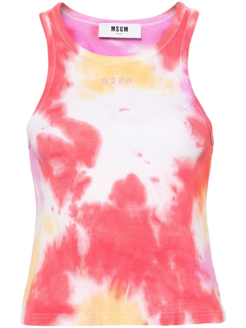 tie-dye ribbed tank top Highlights - Pink/multicolour - Stretch-cotton - Fine ribbed - Tie-dye pattern - Embroidered logo to the front - Round neck - Sleeveless - Straight hem Imported Composition Cotton 95%, Elastane 5% SIZE & FIT Model measurements Height 5 ft 11 in(1.8 m) Bust/Chest 34.25 in(87 cm) Hips 35.82 in(91 cm) Waist 24.8 in(63 cm) FittingInformation Designed for a close fit throughout Made from a midweight stretch fabric, this piece offers elasticity and flexibility when worn This piece fits true to size – take your usual size Washing instructions Hand Wash