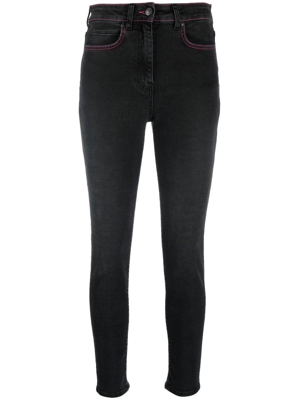 tonal-stitch skinny jeans black/fuchsia pink stretch-cotton tonal stitching high waist belt loops concealed front fastening classic five pockets logo patch to the rear skinny cut Made in Italy Composition Outer: Cotton 98%, Spandex/Elastane 2% Lining: Polyester 65%, Cotton 35% SIZE & FIT Model measurements Height 5 ft 11 in(1.8 m) Bust/Chest 31.49 in(80 cm) Hips 35.43 in(90 cm) Waist 24.4 in(62 cm) FittingInformation This piece fits true to size. We recommend you get your regular size Cut for a close fit Made with a mid-weight stretch fabric Washing instructions Machine Wash