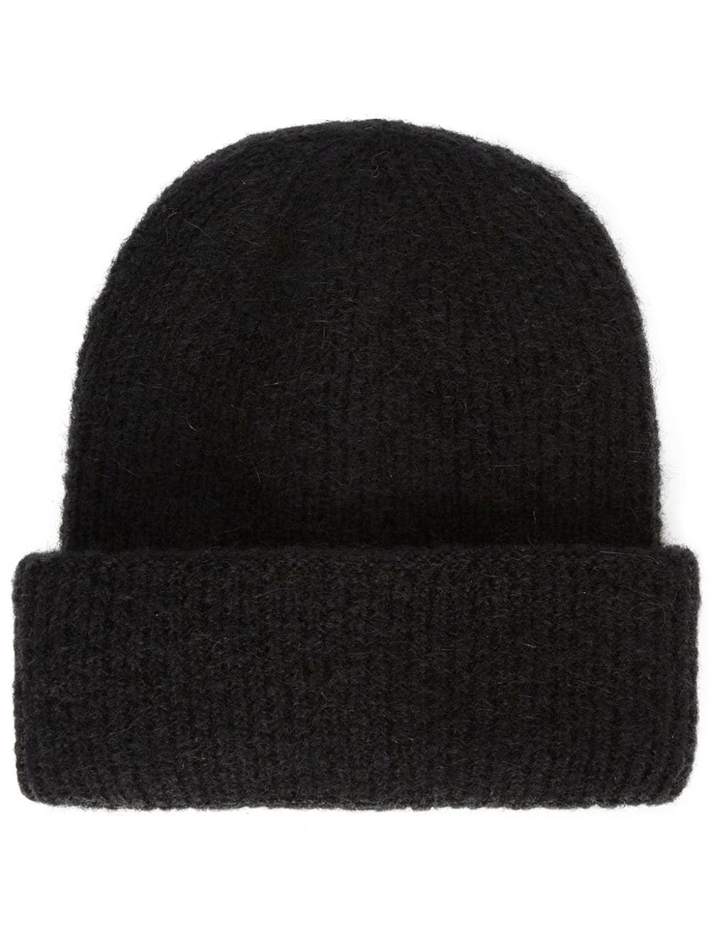 turn-up knitted beanie Highlights - Black - Chunky knit - Ribbed knit - Round crown - Turn-up brim Imported Composition Mohair 53%, Polyamide 45%, Fabric 2%