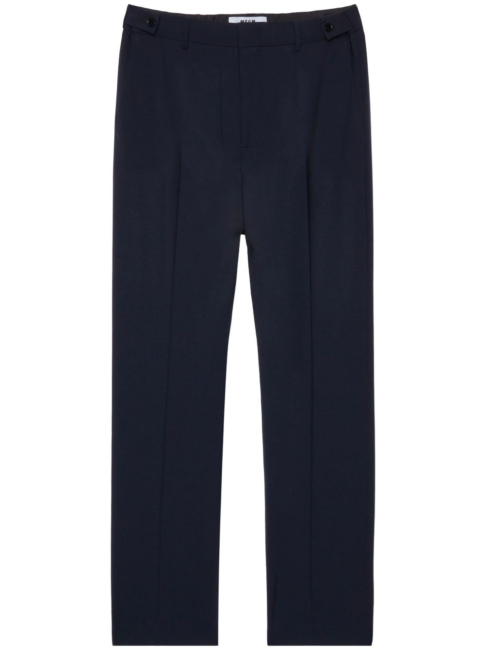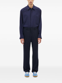 virgin wool-blend trousers Highlights - Navy blue - Hook and zip fly fastening - Two side slash pockets - Rear jetted pocket - Rear button-fastening pocket Imported Composition Outer: Virgin Wool 96%, Spandex/Elastane 4% Lining: Polyester 100%