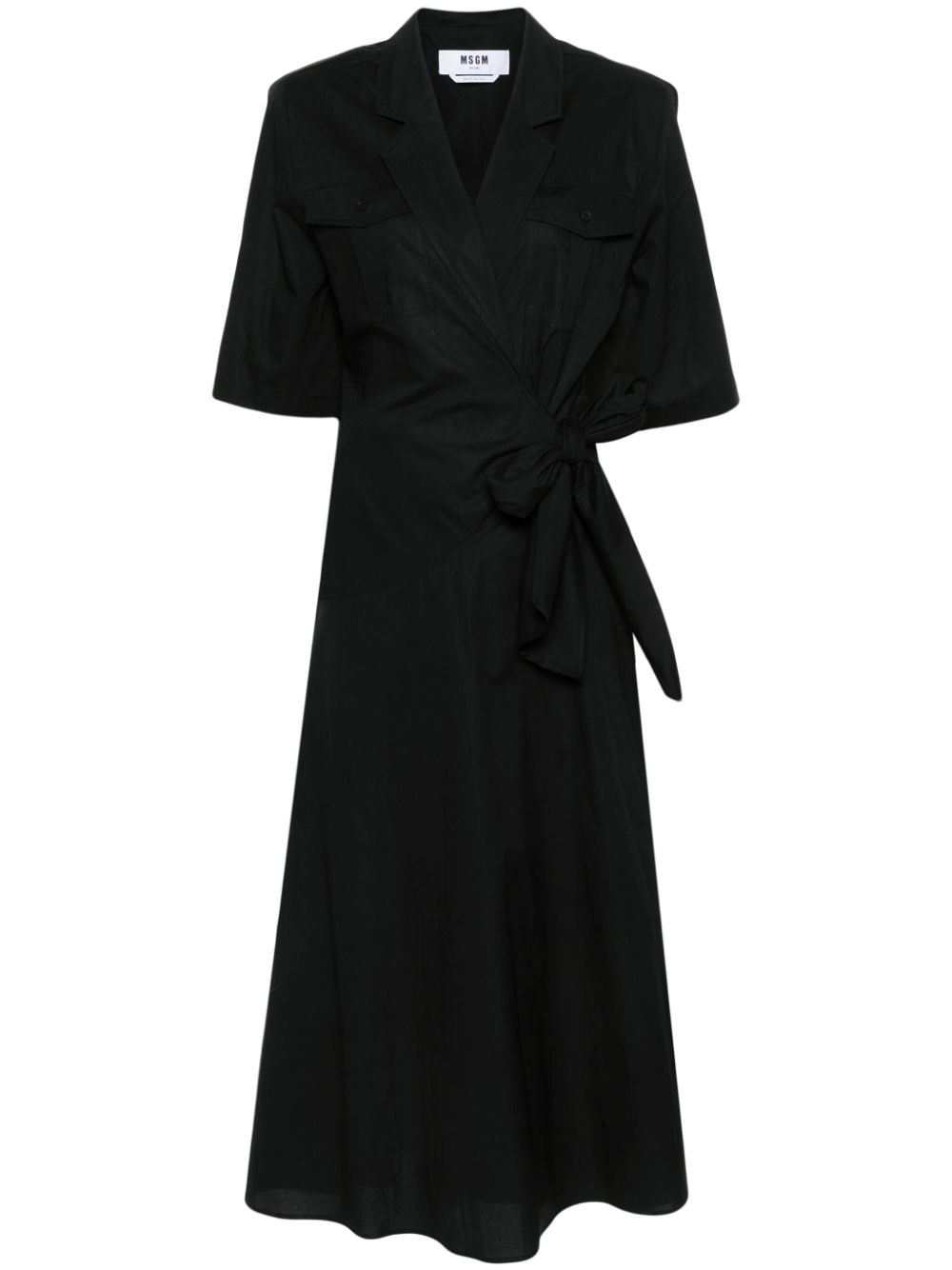 wraparound midi dress Highlights - Black - Cotton - Poplin texture - Notched lapels - V-neck - Shoulder pads - Two button-fastening chest pockets - Short sleeves - Flared skirt - Calf-length - Straight hem - Wraparound style with tied waist Made in Italy Composition Cotton 100% SIZE & FIT Model measurements Height 5 ft 9 in(1.76 m) Bust/Chest 31.88 in(81 cm) Hips 35.43 in(90 cm) Waist 22.44 in(57 cm) FittingInformation Designed for a wraparound style that can be adjusted to your preference The adjustable tie waist gives a more adaptable and personalised fit Made from a midweight non-stretch fabric This piece fits true to size – take your usual size Washing instructions Hand Wash