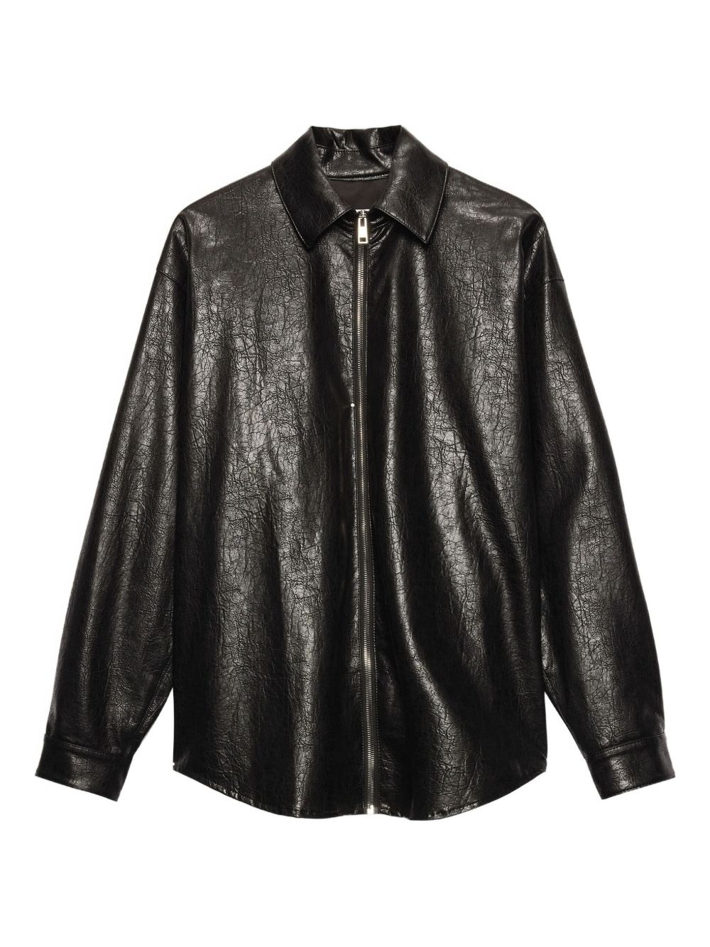 Black shirt in faux leather with a crackle effect