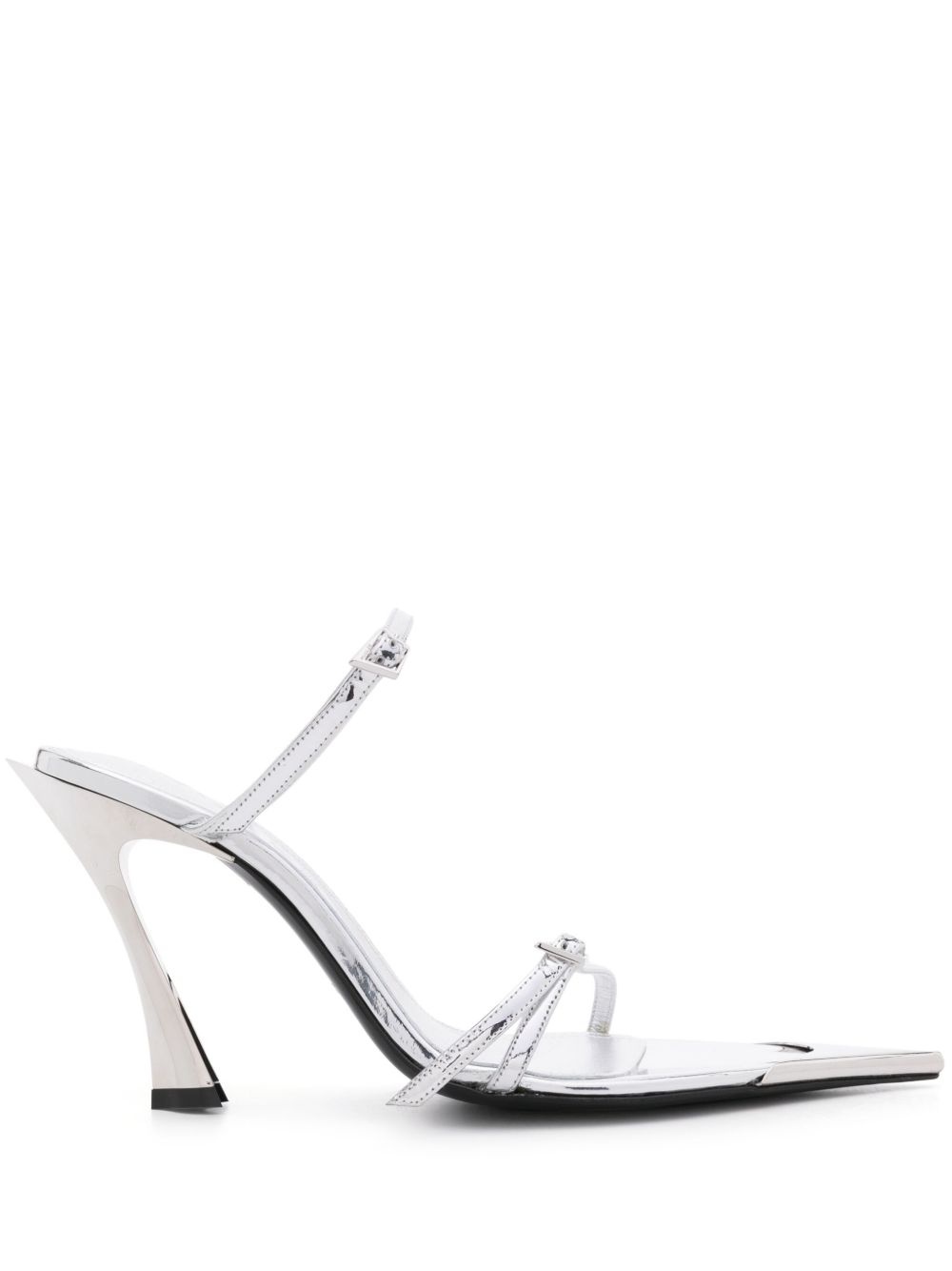 100mm metallic-leather mules Highlights - Silver-tone - Calf leather - Laminated finish/metallic finish - Pointed open toe - Double buckle fastening - Slip-on style - 100mm metallic high heel - Leather sole Made in Italy Composition Sole: Calf Leather 100% Lining: Calf Leather 100% Outer: Patent Calf Leather 100% SIZE & FIT Measurement HEEL 3.93 in(10 cm) Sole height 0.39 in(1 cm)
