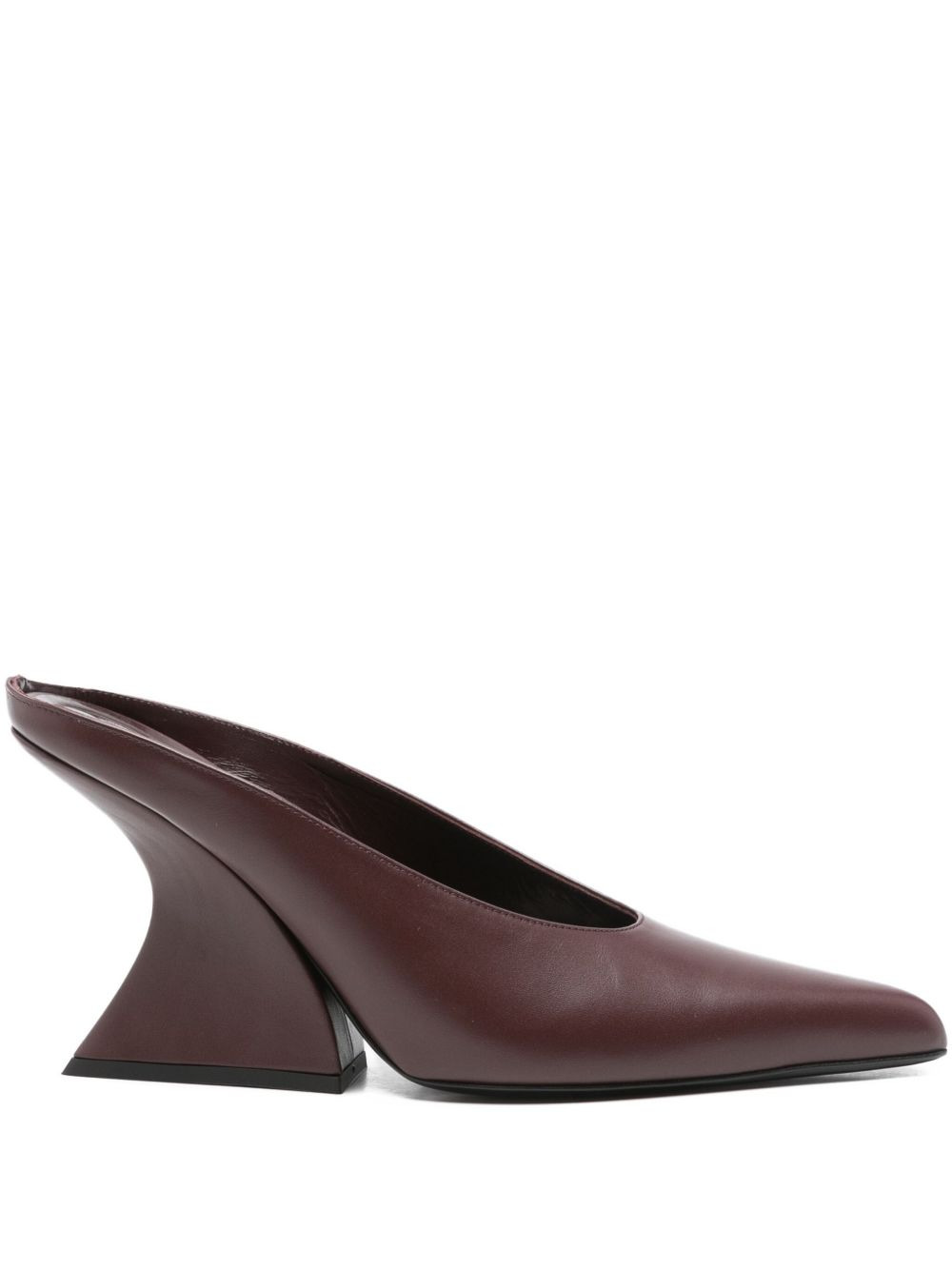 100mm sculpted-heel pointed-toe mules Highlights - Burgundy - Calf leather - Pointed toe - Sculpted heel - Backless design - Slip-on style Made in Italy Composition Lining: Calf Leather 100% Sole: Calf Leather 100%, Rubber 100% Outer: Calf Leather 100% SIZE & FIT Measurement HEEL 3.93 in(10 cm)