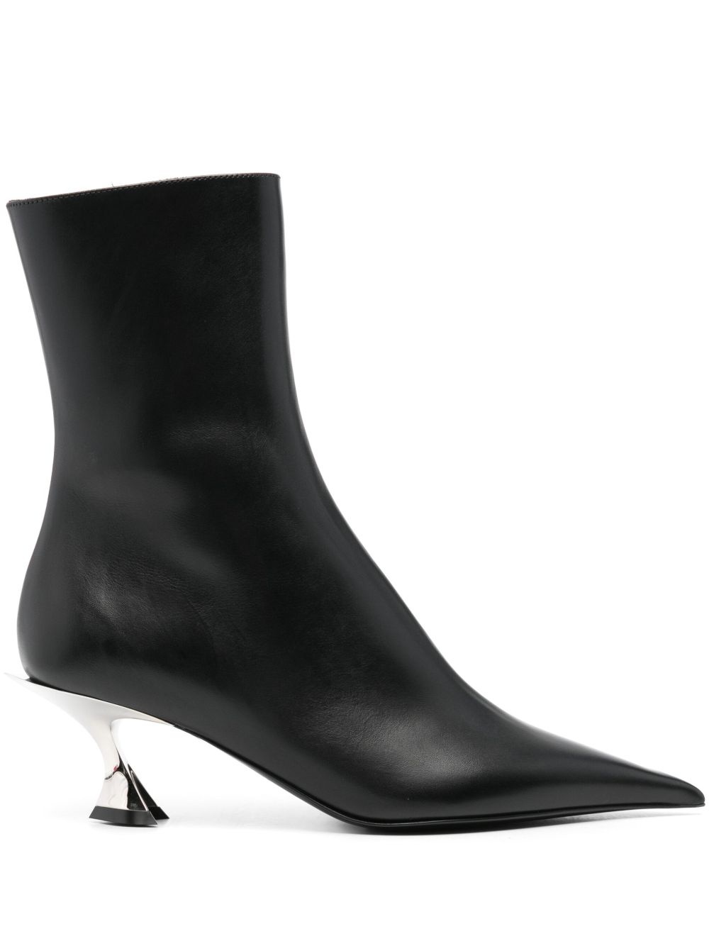 60mm leather ankle boots Highlights - Black - Calf leather - Elasticated side panels - Pointed toe - Mid sculpted heel - Leather and rubber sole - Side zip fastening Made in Italy Composition Outer: Calf Leather 100% Lining: Calf Leather 100% Sole: Calf Leather 100%, Rubber 100% SIZE & FIT Measurement CIRCUMFERENCE 9.44 in(24 cm) HEEL 2.36 in(6 cm) HEIGHT 7.48 in(19 cm)