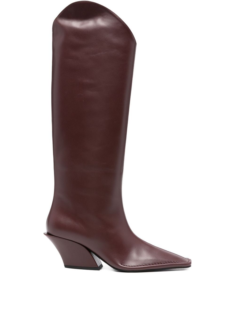 70mm pointed-toe leather boots Highlights - Burgundy - Calf leather - Pointed toe - Knee-high shaft - Sculpted heel - Side zip fastening Made in Italy Composition Lining: Calf Leather 100% Outer: Calf Leather 100% Sole: Calf Leather 100% SIZE & FIT Measurement HEEL 2.75 in(7 cm)