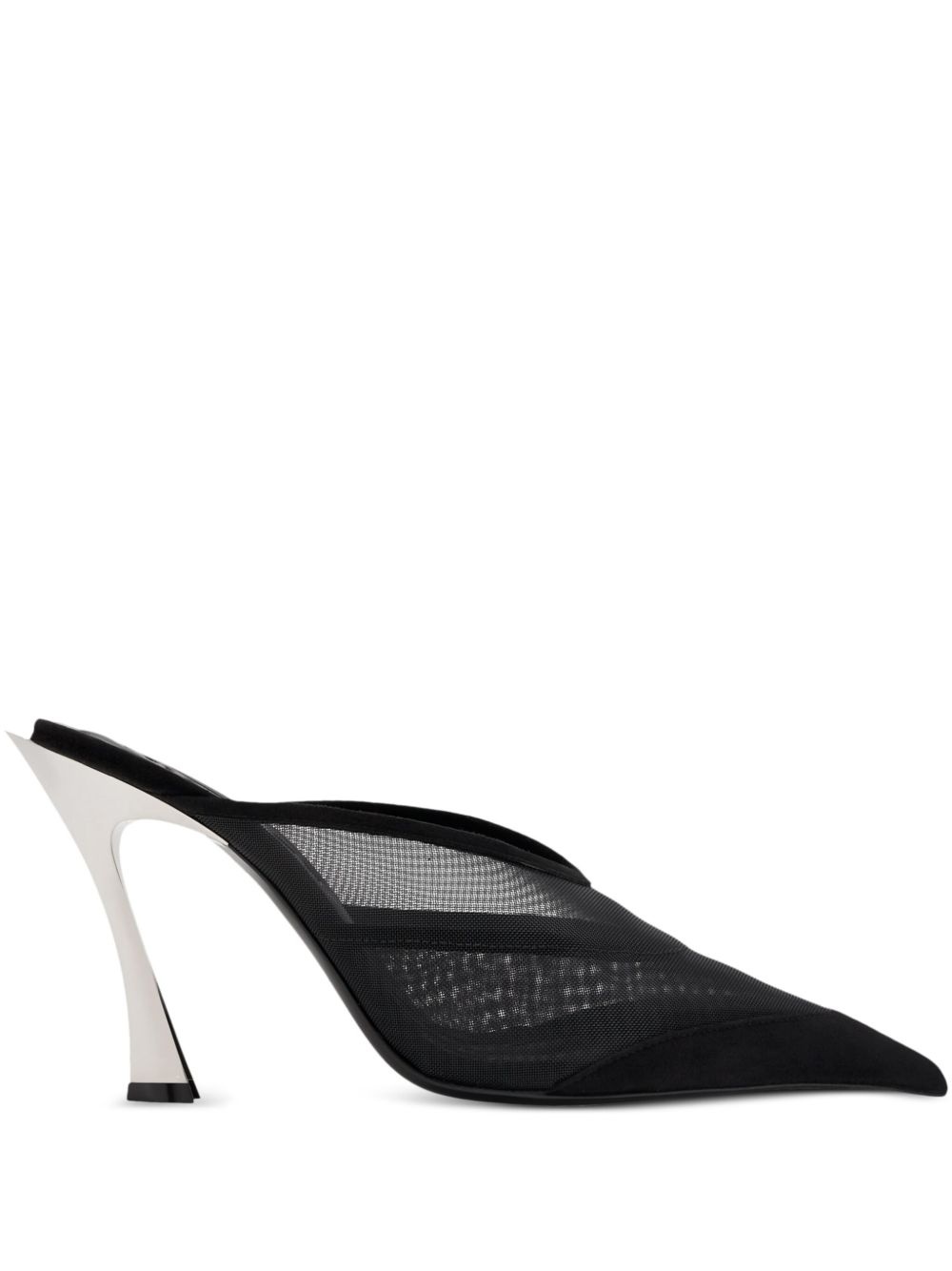 95mm Fang mules Highlights - Black - Branded footbed - High heel - Mesh design Made in Italy Composition Outer: Mesh 100% Lining: Calf Leather 100% Sole: Leather 100%