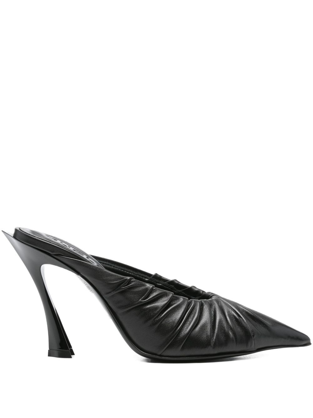 95mm Fang pleated pointed-toe mules Highlights - Black - Calf leather - Pleated detail - Pointed toe - High heel Made in Italy Composition Outer: Calf Leather 100% Lining: Calf Leather 100% Sole: Rubber 100%, Calf Leather 100% SIZE & FIT Measurement HEEL 4.33 in(11 cm)