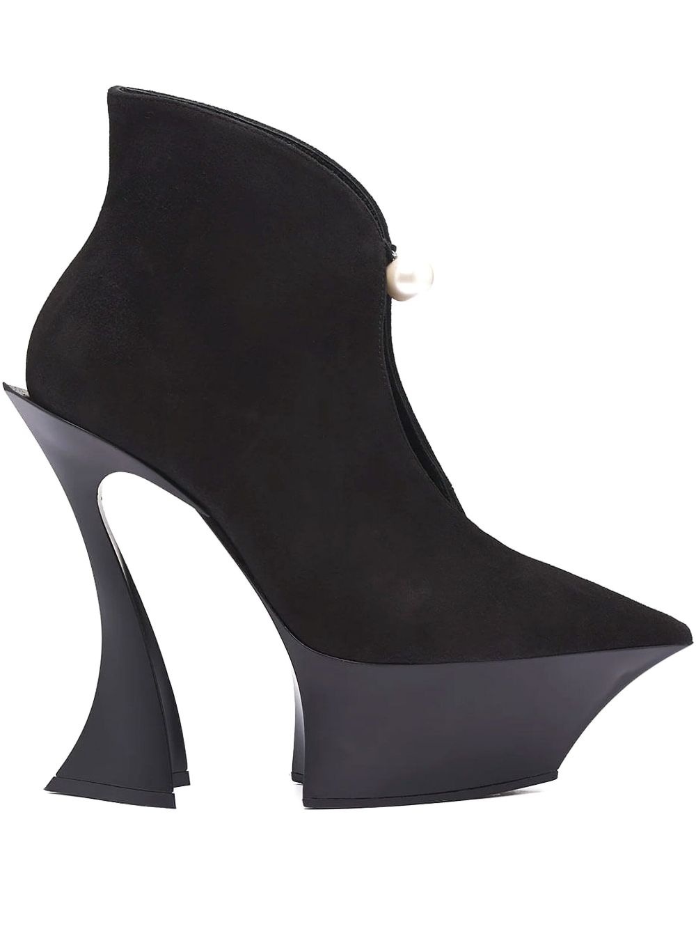 95mm Fang sculpted-heel boots Highlights - Black - Suede - High sculpted heel - Faux-pearl embellishment - Pointed toe - Platform sole Made in Italy Composition Sole: Rubber 100% Outer: Suede 100% Lining: Calf Leather 100% SIZE & FIT Measurement HEEL 3.74 in(9.5 cm)