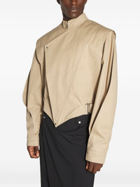 asymmetric-panelled jacket Highlights - Beige - High neck - Zip fastening - Angular panels - Long sleeves - Belted waist Imported Composition Fabric 100% Washing instructions Read Manufacturer Guidelines