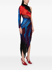asymmetrical pierced dress Highlights - Blue - Side slit - Ruched detailing - Draped detailing - One-shoulder Imported Composition Other fibres 100% SIZE & FIT Model measurements Height 5 ft 10 in(1.78 m) Bust/Chest 33.46 in(85 cm) Hips 36.22 in(92 cm) Waist 23.22 in(59 cm) FittingInformation Designed for a close fit throughout Made from a lightweight stretch fabric, this piece offers elasticity and flexibility when worn