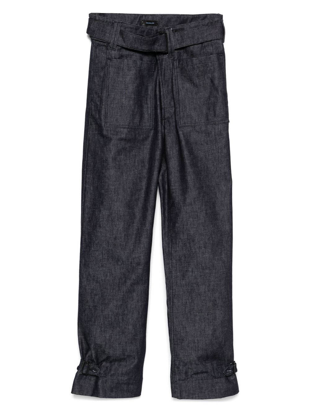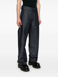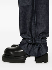 belted jeans Highlights - Indigo blue - Button fly fastening - Hook fastening - Slip pockets to the sides - Belted cuffs Made in Italy Composition Organic Cotton 52%, Cotton 48% SIZE & FIT Model measurements Height 6 ft 2 in(1.87 m) Bust/Chest 37.79 in(96 cm) Hips 37.79 in(96 cm) Waist 30.31 in(77 cm) FittingInformation Designed with a wide leg, these jeans offer a loose and roomy fit The belt offers adjustability for fitted preferences Sturdy and hard-wearing, this denim piece offers no stretch This piece fits very large – take two sizes down