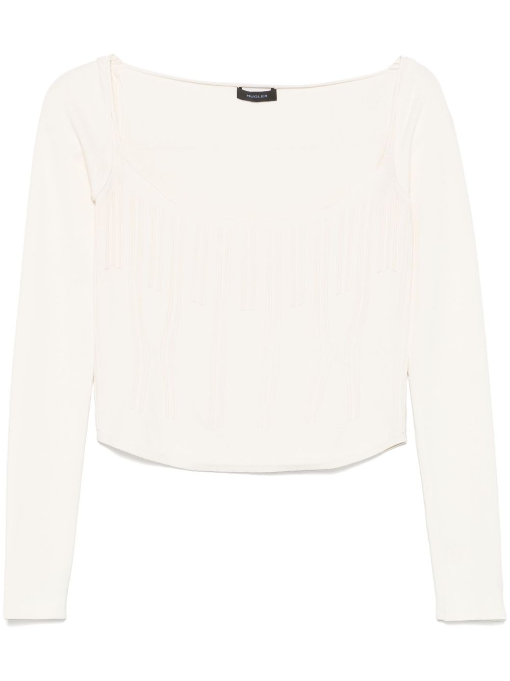 boning-detail sweater Highlights - Ecru - Square neck - Long sleeves Imported Composition Viscose 83%, Polyester 17% SIZE & FIT Model measurements Height 5 ft 10 in(1.77 m) Bust/Chest 33.07 in(84 cm) Hips 37 in(94 cm) Waist 24.8 in(63 cm) FittingInformation Designed for a close fit throughout Made with a midweight knit, this piece offers some stretch This piece fits large – take one size down