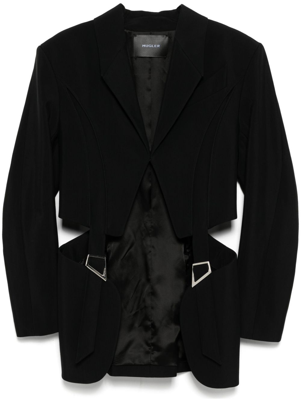 buckled tailored blazer Highlights - Black - Front hook and eye fastening - Panelled design - Chest welt pocket - Two adjustable straps to the front - Cut-out detailing - Shoulder pads - Long sleeves - Full lining Imported Composition Outer: Viscose 76%, Virgin Wool 24% Lining: Cupro 40% SIZE & FIT Model measurements Height 5 ft 10 in(1.79 m) Bust/Chest 31.88 in(81 cm) Hips 36.22 in(92 cm) Waist 24.4 in(62 cm) FittingInformation Designed for a slim fit that sits just away from the body offering a close yet comfortable fit The internal shoulder pads offer a structured shape Made from a midweight non-stretch fabric