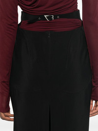 buckled tailored skirt Highlights - Black - Twill weave - Seam detailing - Adjustable strap to the rear - Cut-out detailing - Rear slit - Mid-length - Full lining - High-low hem - Concealed rear zip fastening Imported Composition Outer: Viscose 76%, Virgin Wool 24% Lining: Cupro 100% SIZE & FIT Model measurements Height 5 ft 10 in(1.78 m) Bust/Chest 31.49 in(80 cm) Hips 37 in(94 cm) Waist 23.62 in(60 cm) Measurement HIPS 37.79 in(96 cm) LENGTH 26.37 in(67 cm) WAIST 29.92 in(76 cm) FittingInformation This midi-length skirt is intended to be worn high on the waist The vented hem offers movement at the rear Made from a midweight non-stretch fabric This piece fits true to size – take your usual size