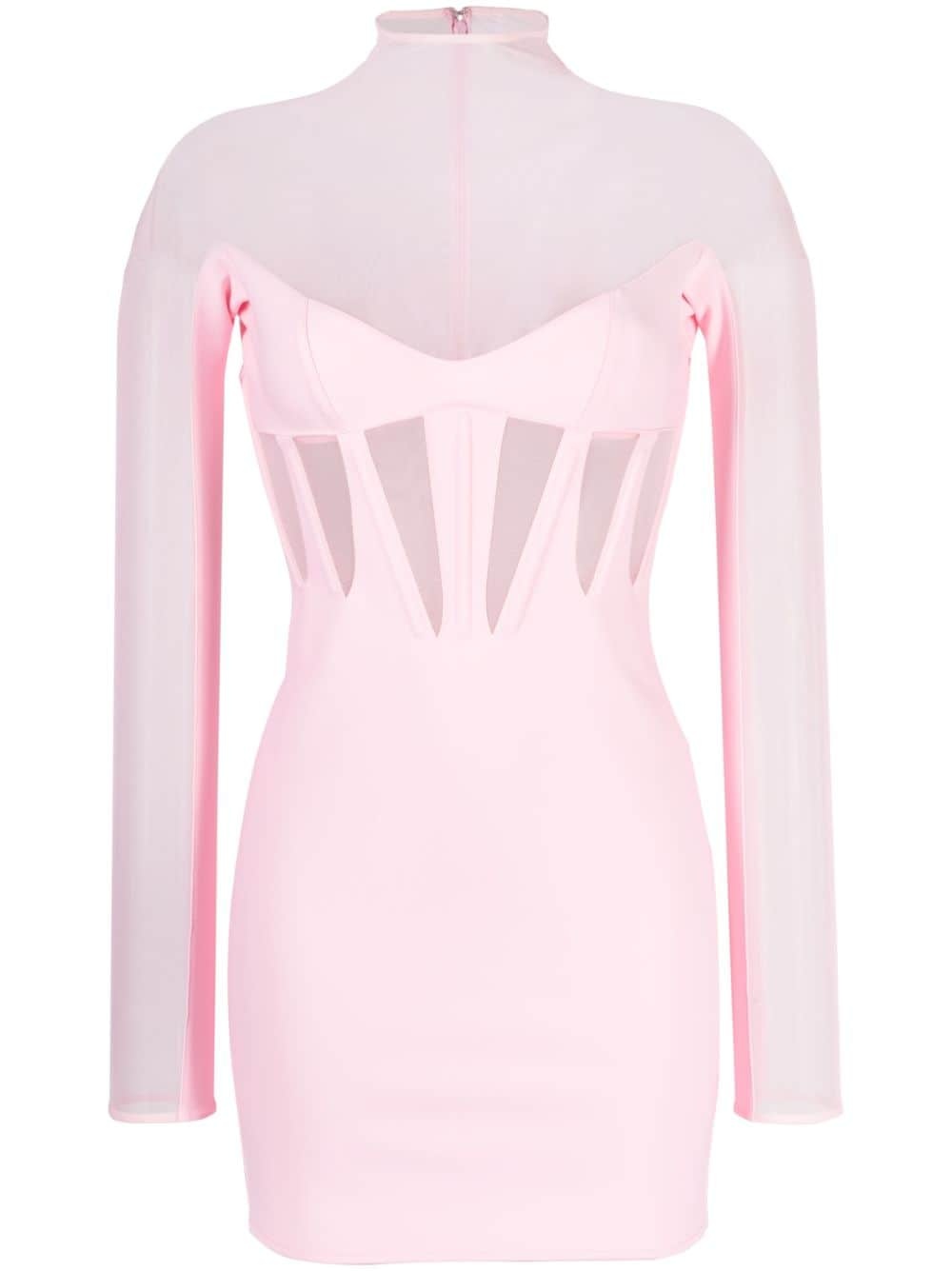 Corset Illusion sheer-panels minidress Mugler's fondness for sculpted designs is evident in this minidress. Constructed with sheer tulle and stretch panels, it is enhanced by the corset-style top. Highlights - Light pink - Stretch-design - Tulle panels - Sheer panels - Corset style - High neck - Long sleeves - Above-knee length - Rear zip fastening - Straight hem Imported Composition Polyamide 78%, Spandex/Elastane 22% SIZE & FIT Model measurements Height 5 ft 10 in(1.77 m) Bust/Chest 27.95 in(71 cm) Hips 33.85 in(86 cm) Waist 23.22 in(59 cm) FittingInformation Designed for a very close and sculpting fit The internal bodice offers support and shape Made from a midweight stretch fabric, this piece offers elasticity and flexibility when worn This piece fits true to size – take your usual size Measurement SLEEVE LENGTH 22 in(55.9 cm) HIPS 30.98 in(78.7 cm) LENGTH 29.48 in(74.9 cm) WAIST 25.98 in(66 cm) BUST 27.99 in(71.1 cm)
