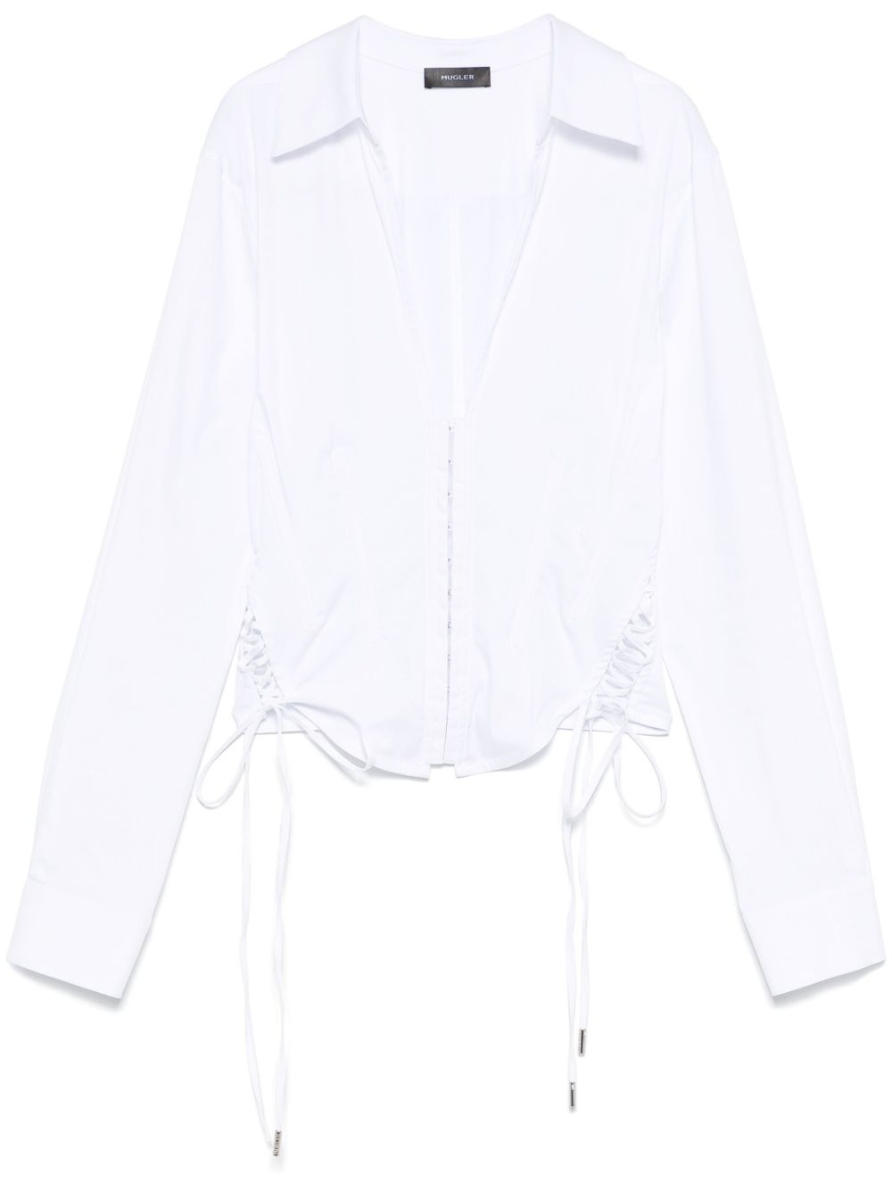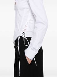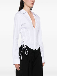 corset poplin shirt Highlights - White - Hook and eye fastening - Buttoned-cuff sleeves - Plunging v-neck - Lace-up detailing Imported Composition Organic Cotton 78%, Polyamide 18%, Elastane 4% SIZE & FIT Model measurements Height 5 ft 10 in(1.78 m) Bust/Chest 33.46 in(85 cm) Hips 36.22 in(92 cm) Waist 23.22 in(59 cm) FittingInformation Designed for a close fit throughout The adjustable drawstring means that you can adjust this piece’s fit to suit your comfort and preference Made from a lightweight stretch fabric, this piece offers elasticity and flexibility when worn