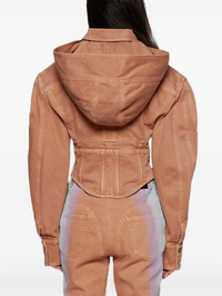 corseted denim jacket Highlights - Clay - Cotton - Denim - Corset style - Front button fastening - Exposed-seam detailing - Classic collar - Classic hood - Long sleeves - Buttoned cuffs - Two chest flap pockets - Curved hem Made in Italy Composition Cotton 100% SIZE & FIT FittingInformation Designed for a close fit throughout Sturdy and hard-wearing, this denim piece offers no stretch Washing instructions Read Manufacturer Guidelines