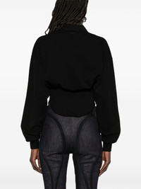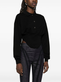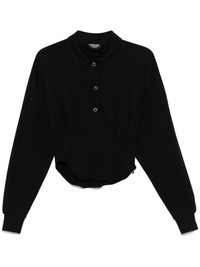 corseted polo shirt Highlights - Black - Front button placket - Tonal logo plaque - Drop shoulder - Long sleeves Imported Composition Cotton 100% SIZE & FIT Model measurements Height 5 ft 11 in(1.8 m) Bust/Chest 32.67 in(83 cm) Hips 36.22 in(92 cm) Waist 24.4 in(62 cm) FittingInformation Designed for a loose fit at the chest with a close fit over the waist and hips Made from a midweight non-stretch fabric, this piece offers minimal elasticity when worn Washing instructions Machine Wash