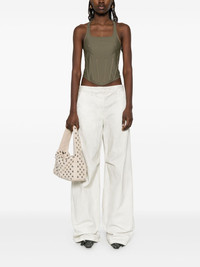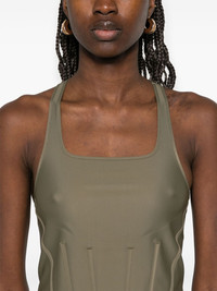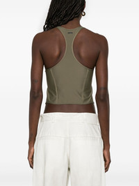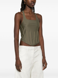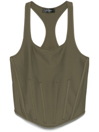 corseted tank top Highlights - Olive green - Scoop neck - Sleeveless - Racerback Imported Composition Polyamide 78%, Elastane 22% SIZE & FIT Model measurements Height 5 ft 11 in(1.8 m) Bust/Chest 32.67 in(83 cm) Hips 36.22 in(92 cm) Waist 24.4 in(62 cm) FittingInformation Designed for a very close and sculpting fit Cropped in length Made from a midweight stretch fabric, this piece offers elasticity and flexibility when worn Washing instructions Machine Wash