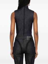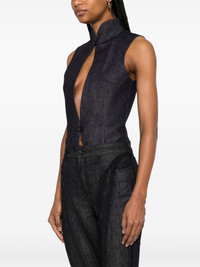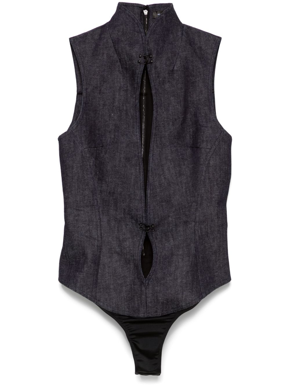 cut-out denim bodysuit Highlights - Indigo blue - Front button fastening - Concealed fly and button fastening - Two rounded pockets to the sides - Logo lettering - Just a reminder that this piece must be tried on over your own garments. Imported Composition Lining: Cotton 89%, Elastane 11% Outer: Cotton 98%, Elastane 2% SIZE & FIT Model measurements Height 5 ft 11 in(1.8 m) Bust/Chest 31.49 in(80 cm) Hips 35.82 in(91 cm) Waist 24.8 in(63 cm) FittingInformation Designed for a slim fit that sits just away from the body offering a close yet comfortable fit Constructed from stretch denim, this piece offers a stretch fit with durability